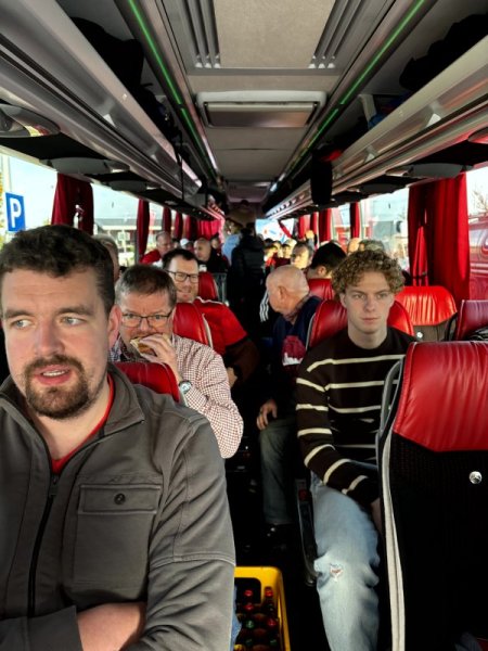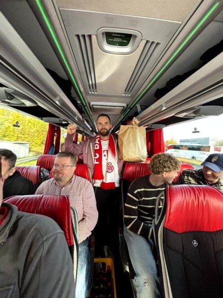 Gemeinsam haben die „Fußballverrückten“ in der letzten Saison in den Stadien von Hannover, Dortmund, Gladbach und erstmalig sogar in München ihren Lieblingsvereinen zugejubelt. Bei der Organisation und Durchführung der Busfahrten können Günter Berkemeier, Jürgen Haske, Marco Hendan, Axel Müller, Elmar Pierenkemper und Cornelius Schneider durch Ticketverkauf, Fahrtkosten, Tombola im Bus und Spenden immer etwas für einen guten Zweck zur Seite legen. „Die Fußballfans, die mit uns zu den Spielen fahren, wissen, dass am Ende der Saison eine gute Sache unterstützt wird und sind gern bereit, ein paar Euro mehr einzusetzen“, berichtet Bayern-Fan Marco Hendan aus Stromberg, der seit über zehn Jahren mit Herz und Seele Cheforganisator ist. Im Gegenzug fehlt es den mitfahrenden Fans an nichts: Sie können es sich im Bus bequem machen, für Getränke und Imbiss ist gesorgt und in Hannover ist sogar ein Parkplatz direkt vor dem Stadiontor gesichert. In der letzten Saison fuhren insgesamt 288 Personen mit zu den Spielen.